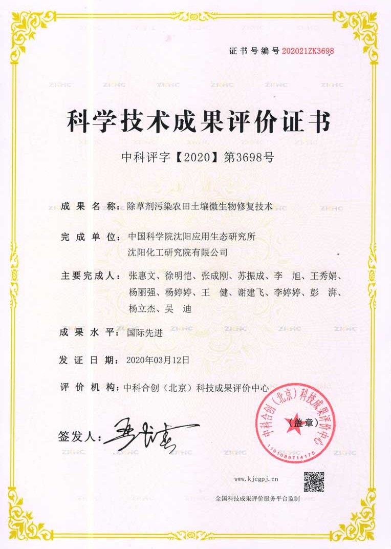 近日,經(jīng)第三方專業(yè)科技成果評(píng)價(jià)機(jī)構(gòu)——中科合創(chuàng)(北京)科技成果評(píng)價(jià)中心科技成果評(píng)價(jià),由沈陽院土壤修復(fù)團(tuán)隊(duì)和中科院沈陽應(yīng)用生態(tài)所共同完成的“除草劑污染農(nóng)田土壤微生物修復(fù)技術(shù)”項(xiàng)目,填補(bǔ)國內(nèi)外空白,總體達(dá)到國際先進(jìn)水平。