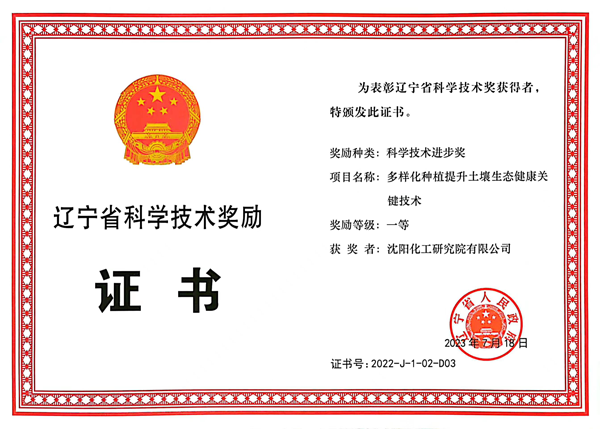 近日,《遼寧省人民政府關(guān)于2022年度遼寧省科學(xué)技術(shù)獎勵的決定》正式公布,沈陽院牽頭申報的“化工風(fēng)險預(yù)警、智能評估與管控技術(shù)及應(yīng)用”項目榮獲科技進(jìn)步二等獎,沈陽院聯(lián)合遼寧省農(nóng)科院申報的“多樣化種植提升土壤生態(tài)健康關(guān)鍵技術(shù)”榮獲科技進(jìn)步一等獎。