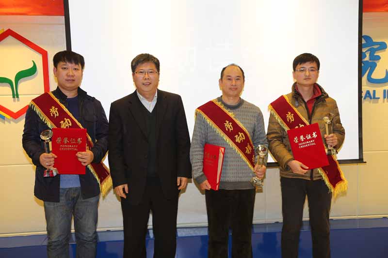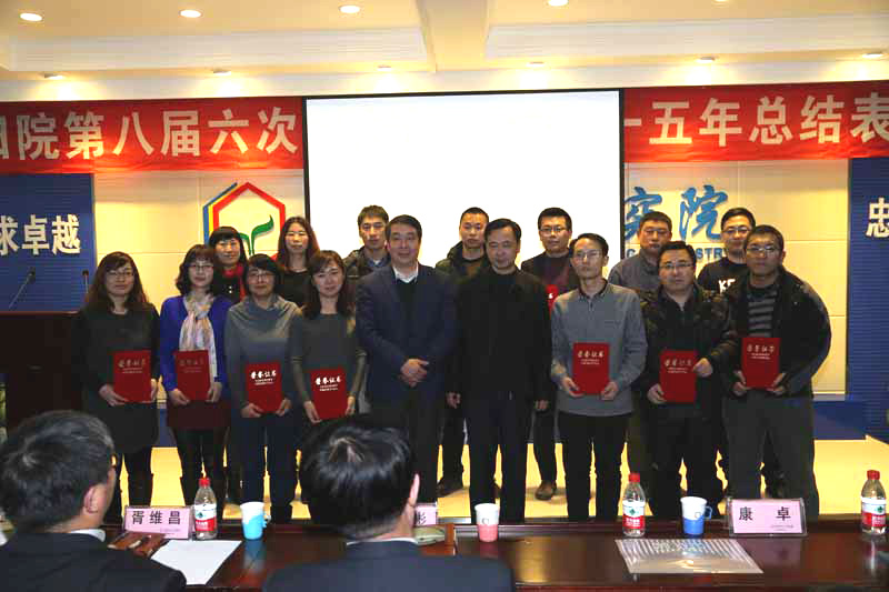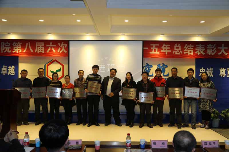 在總結表彰活動頒獎典禮上,大會對院2015年度“先進集體、先進班組、特等勞動模范、勞動模范、科研質量獎、忠誠敬業(yè)獎、青年勵志獎、先進工作者、HSE先進個人”進行了表彰,院領導班子成員分別為獲獎集體和個人頒發(fā)獎狀、獎杯和證書,并與獲獎人員親切合影留念。