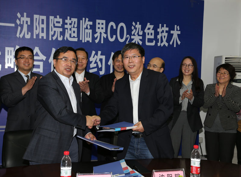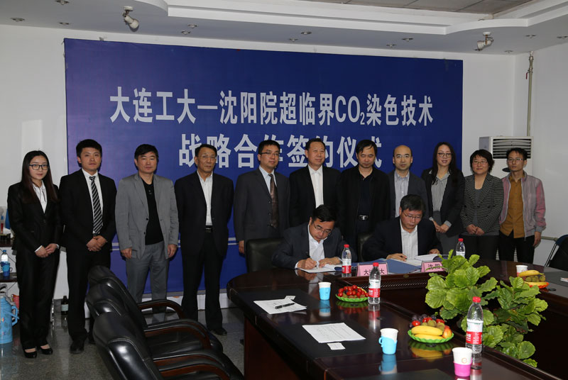 5月15日,“沈陽院-大連工業(yè)大學(xué)超臨界CO2無水染色技術(shù)戰(zhàn)略合作協(xié)議”簽約儀式在沈陽院舉行。沈陽院常務(wù)副院長胥維昌和大連工業(yè)大學(xué)副校長安慶大,共同在研發(fā)中心合作協(xié)議上簽字。大連工業(yè)大學(xué)紡織與材料工程學(xué)院院長鄭來久、沈陽院副院長龔黨生、化工材料所相關(guān)專業(yè)負(fù)責(zé)人等出席簽約儀式。