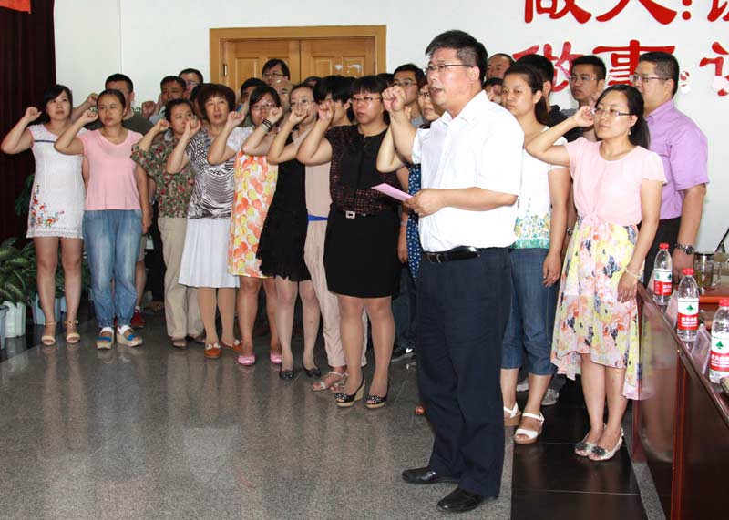在組織黨員過(guò)政治生日的環(huán)節(jié)中,常務(wù)副院長(zhǎng)胥維昌帶領(lǐng)全院過(guò)政治生日的63名黨員,在鮮紅的黨旗下重溫了入黨誓詞,再一次莊嚴(yán)承諾。黨委副書記夏志學(xué)在致辭中指出:組織黨員過(guò)“政治生日”是我院加強(qiáng)黨的建設(shè)、強(qiáng)化黨員意識(shí)、增強(qiáng)黨性修養(yǎng)的一個(gè)重要舉措,既是我們黨員的政治待遇,也是人生中最美好的時(shí)刻,因?yàn)樵谶@五年、十年、十五年乃至三十五年的黨齡生活中,我們所走的的每一步都將鐫刻在沈陽(yáng)院的歷史豐碑上。