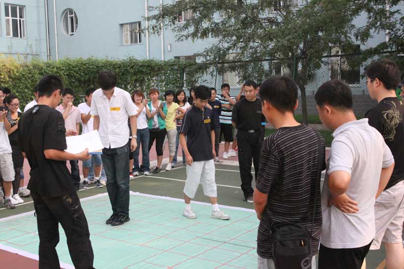 團(tuán)隊組建完畢后,拓展活動正式開始。隨著拓展教練的一聲哨響,旗手揮動著鮮亮的隊旗為大家指明了隊列的方位并將整齊的隊伍帶到了活動場地。緊接著,就是一個個有趣又刺激的拓展游戲:有體現(xiàn)互助,實現(xiàn)雙贏的“迷宮”游戲,有相信自己,相信伙伴,體現(xiàn)團(tuán)隊的“萬里長城”游戲…最后,畢業(yè)典禮的舉行,畢業(yè)證書的發(fā)放將活動推向了高潮并完美謝幕。