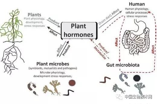 例如,腸道微生物、食物與腸炎等疾病有緊密關(guān)系,雖然人們對(duì)其的精細(xì)機(jī)制并不知道。但植物激素脫落酸(ABA)在植物中的作用是告訴植物現(xiàn)在處于干旱中,而在人體中可以讓炎癥加重;另外一種植物激素赤霉素(GAs)可以抑制人體發(fā)炎。