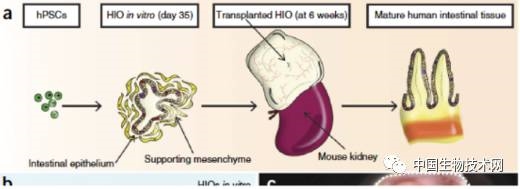 約翰霍普金斯大學(xué)小兒外科醫(yī)師 David Hackam 是用干細(xì)胞借助生物可降解支架制造人工小腸研究項(xiàng)目主任,他希望這一技術(shù)將最終用于壞死性小腸結(jié)腸炎的治療。壞死性小腸結(jié)腸炎是一種罕見(jiàn)的早產(chǎn)兒疾病,死亡率非常高。這個(gè)技術(shù)的第一步是培養(yǎng)出手指樣腸絨毛,腸黏膜是吸收葡萄糖、脂肪酸和氨基酸分子的腸結(jié)構(gòu)。Hackam 和康奈爾大學(xué)生物工程師 John March 合作,用膠原蛋白制作一個(gè)腸絨毛支架。然后是把小腸干細(xì)胞充填到這個(gè)絨毛。用人類(lèi)小腸干細(xì)胞制作的小腸絨毛已經(jīng)成功,并被成功移植到小鼠體內(nèi)(S. A. Shaffiey et al. Regen. Med. 11,45–61; 2016)。研究小組下一步是進(jìn)一步優(yōu)化,并觀察是否具有吸收營(yíng)養(yǎng)的基本功能。小腸蠕動(dòng)和神經(jīng)支配功能也需要建立。