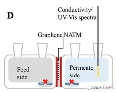 研究人員用多個不同孔尺寸和分布的石墨烯膜做了測試,將每個膜放在擴散室的中間。他們在腔室的料液側填充了含有不同分子大小混合物溶液,從氯化鉀(0.66納米寬)、維生素B12(1到1.5納米)、溶菌酶(4納米)和一種在在蛋清中發(fā)現的蛋白質。腔室的另一側充滿了稀溶液。